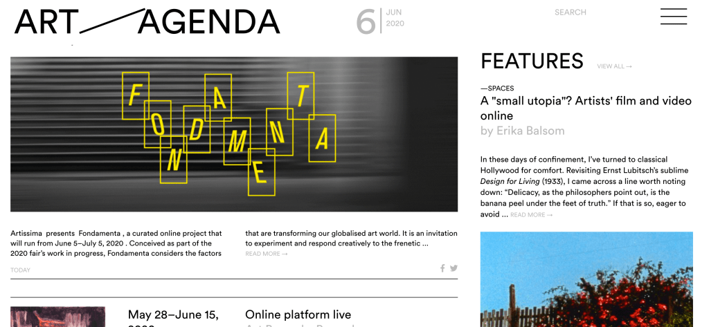 During COVID19 crisis many arts institutions have transferred existing programme, or created new programme online. This has given rise to a vast digital publishing drive.